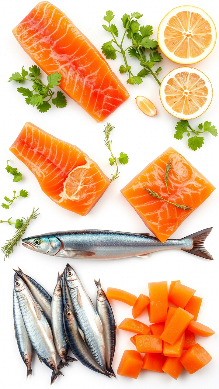 इन मछलियों में DHA होता है जो आंखों की रेटिना के लिए ज़रूरी होता है। यह ट्राइग्लिसराइड्स को घटाने और टाइप 2 डायबिटीज़ में शुगर मैनेजमेंट में मदद करता है।